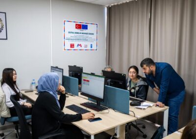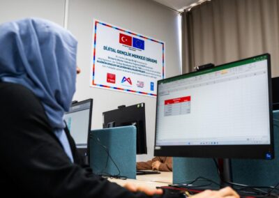 The Digital Youth Center aims to prepare young residents of Mersin for Industry 4.0 and the digital economy by offering structured training and practical learning experiences in high-demand areas such as data analysis, cybersecurity, digital marketing, e-commerce, software development, digital design, artificial intelligence, machine learning and basic computer skills. These programs are designed to strengthen youth employability, digital literacy, and capacity to innovate, aligning with evolving workforce needs.